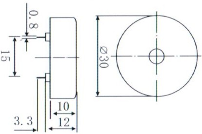 產(chǎn)品名稱: 壓電式無源蜂鳴器 30mm 2.6KHz插針